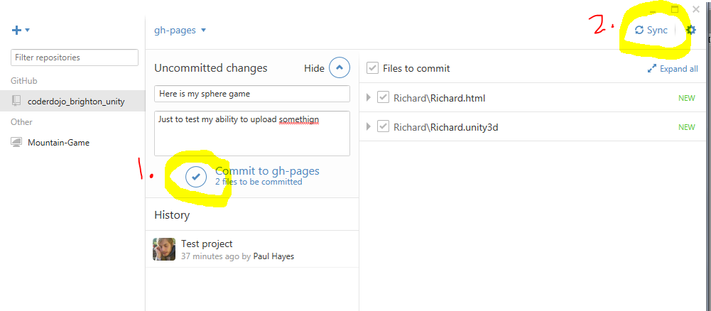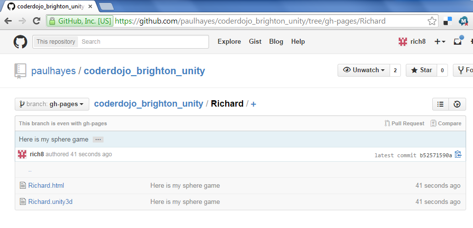 - Ask Paul for an invite to the paulhayes/coderdojo_brighton_unity repository